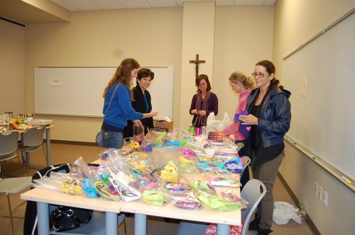 The preparation for our journey began with much help from many people. We organized all our donations and began with packing and creating gift bags for the girls, as shown below.