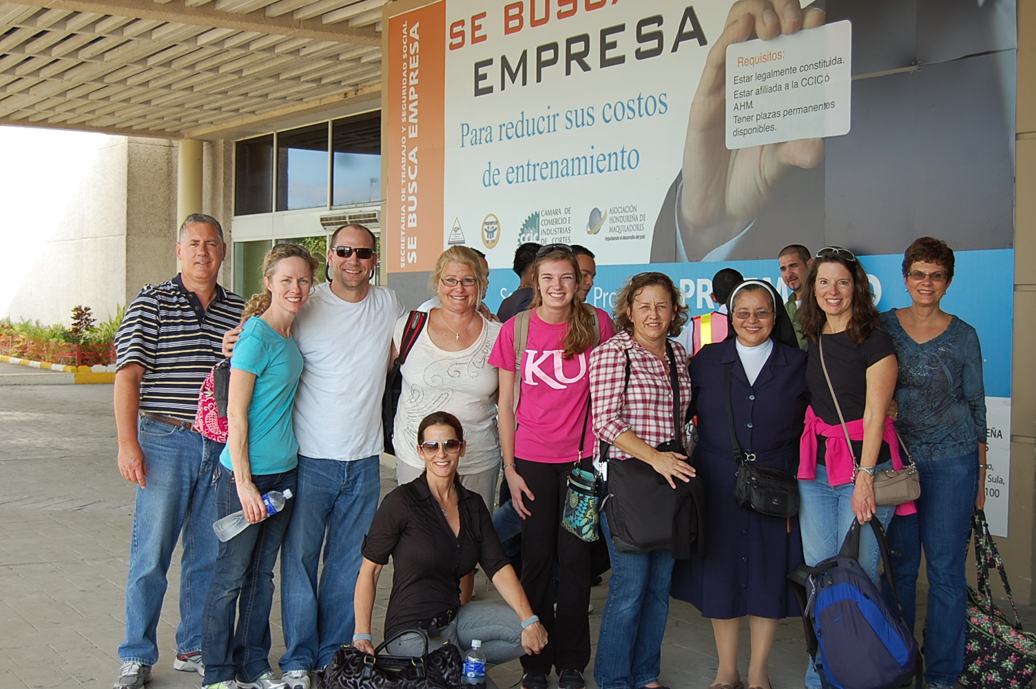 Our team met at Kansas City airport before 5am for our 6am flight to Houston and on to San Pedro Sula, Honduras. We didn’t quite start out as we had hoped, as we watched out the window as the Kansas City luggage cart pulled away from the loading area with 3 of our bags. We knew one of them contained toiletries many of us had decided to check rather than carry on. Our second problem occured when our 11:45 arrival to Honduras was interrupted by the runway being closed due to a plane with a flat tire stuck on the runway. Due to our fuel level being low we diverted to El Salvador, refueled and waited for the opening of the runway. We finally arrived three hours late.