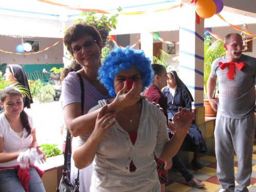 As soon as the girls and elderly arrive, they are greeted by our tres amigos clowns (Brad, Greg and Mike), squirting them with their water cameras and flowers. Never have I seen so many priceless reactions. The girls and elderly had constant smiles on their faces. The Sors also participated in the fun (I think they had more fun then anyone)!
