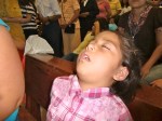 The Mass was to begin at 5:00pm, with the Bishop celebrating. He arrived around 5:30-5:45 and we began Mass shortly after…again, true Honduran time! The Mass was lengthy and a few of the chicas couldn’t manage to stay awake 😉 The Mass was also offered for Sor Elisa. It is tradition to display a black ribbon over the doorway when someone has died. The girls decorated all the flower vases with a black ribbon in honor of Sor.
