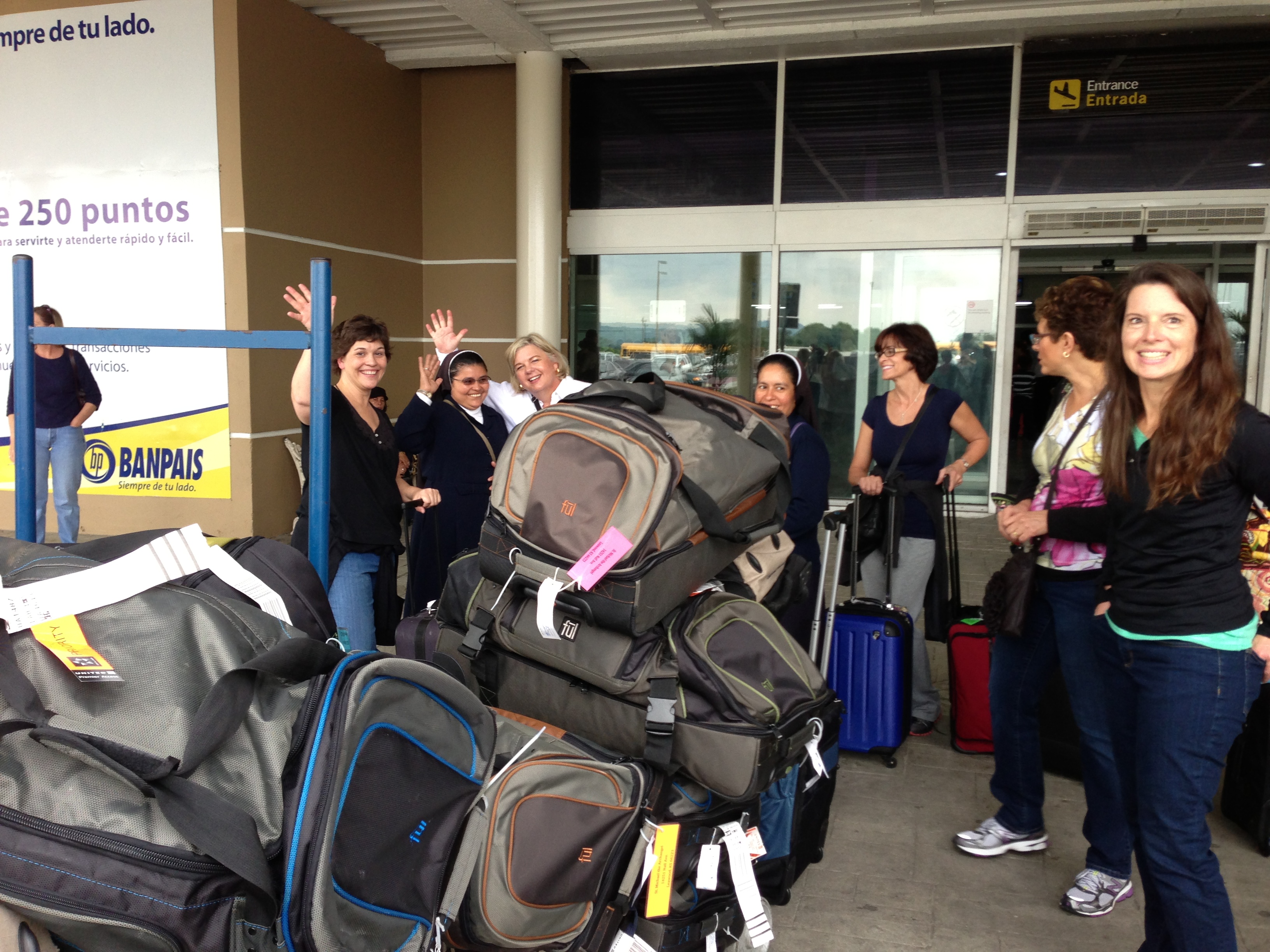 The travel team started our journey to Honduras very early! We met at the airport at 5:00am for a 6:00am flight! Mike had most of our bags of donations and supplies in his truck, so we helped unload and began the check in process. A few of our travelers, Mike, Magda, and Karla upgraded their tickets. This was very helpful to our team because it let them have 3 checked bags at 70 pounds each instead of two at 50 pounds. Our small airplane had many bags- thanks to our 22 bags of St. Michael’s donations! Due to excess bags, they took a long time loading. Our flight left over 30 minutes late! Thankfully all the bags made it to Houston! Many of our cary on bags got checked at the gate, so we had to quickly find them and run through the airport to make our connection! Thankfully, Dani went ahead and had them hold the plane for us! The St. Michael travelers were the last to get on the plane to Honduras, but we all made it!