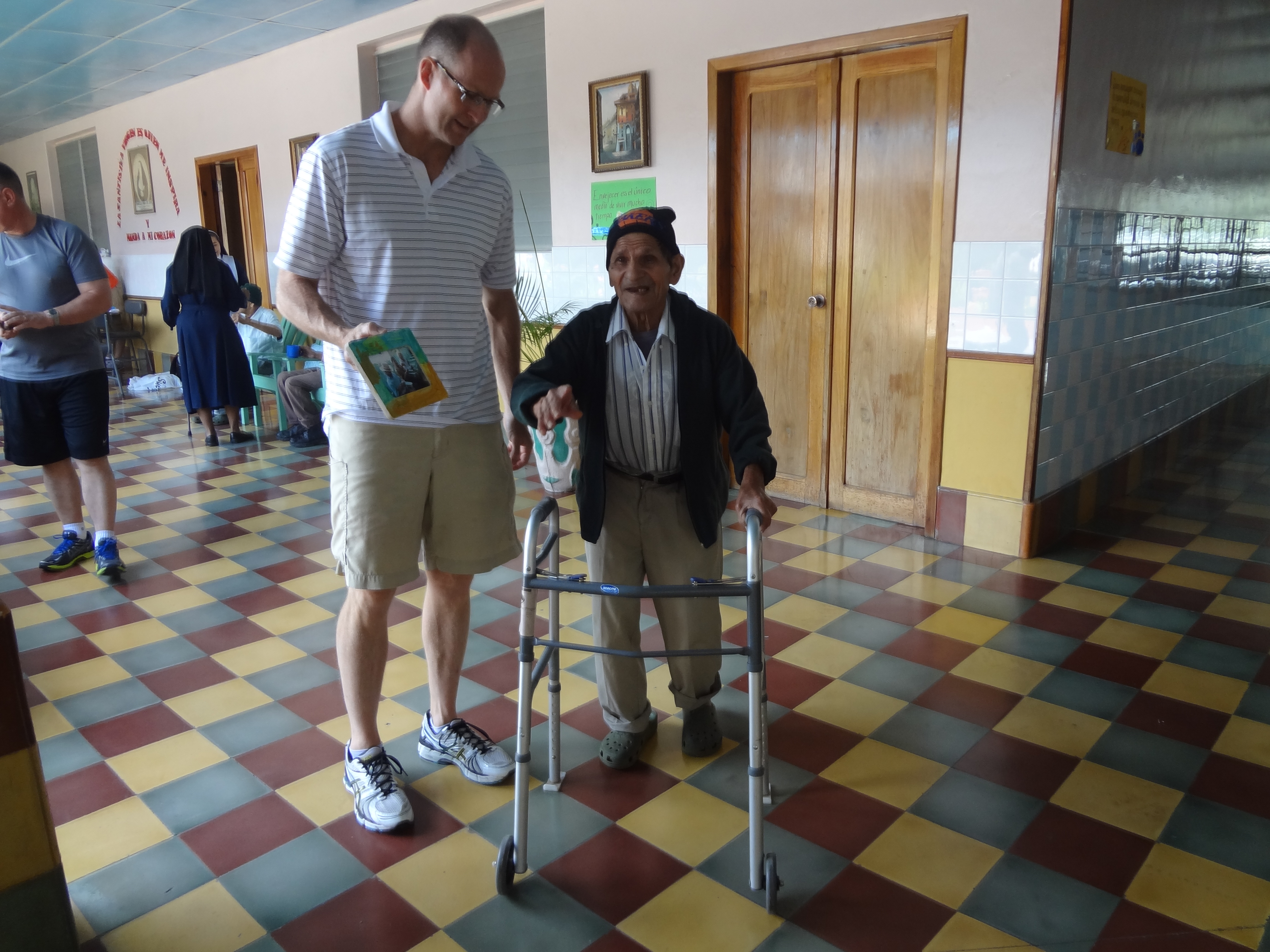 After a breakfast of eggs, beans, tortillas and fresh avocado we joined the elderly in their courtyard to complete their picture frames, play games and of course dancing! Today was shaving day so all the hombres were looking muy guapo!