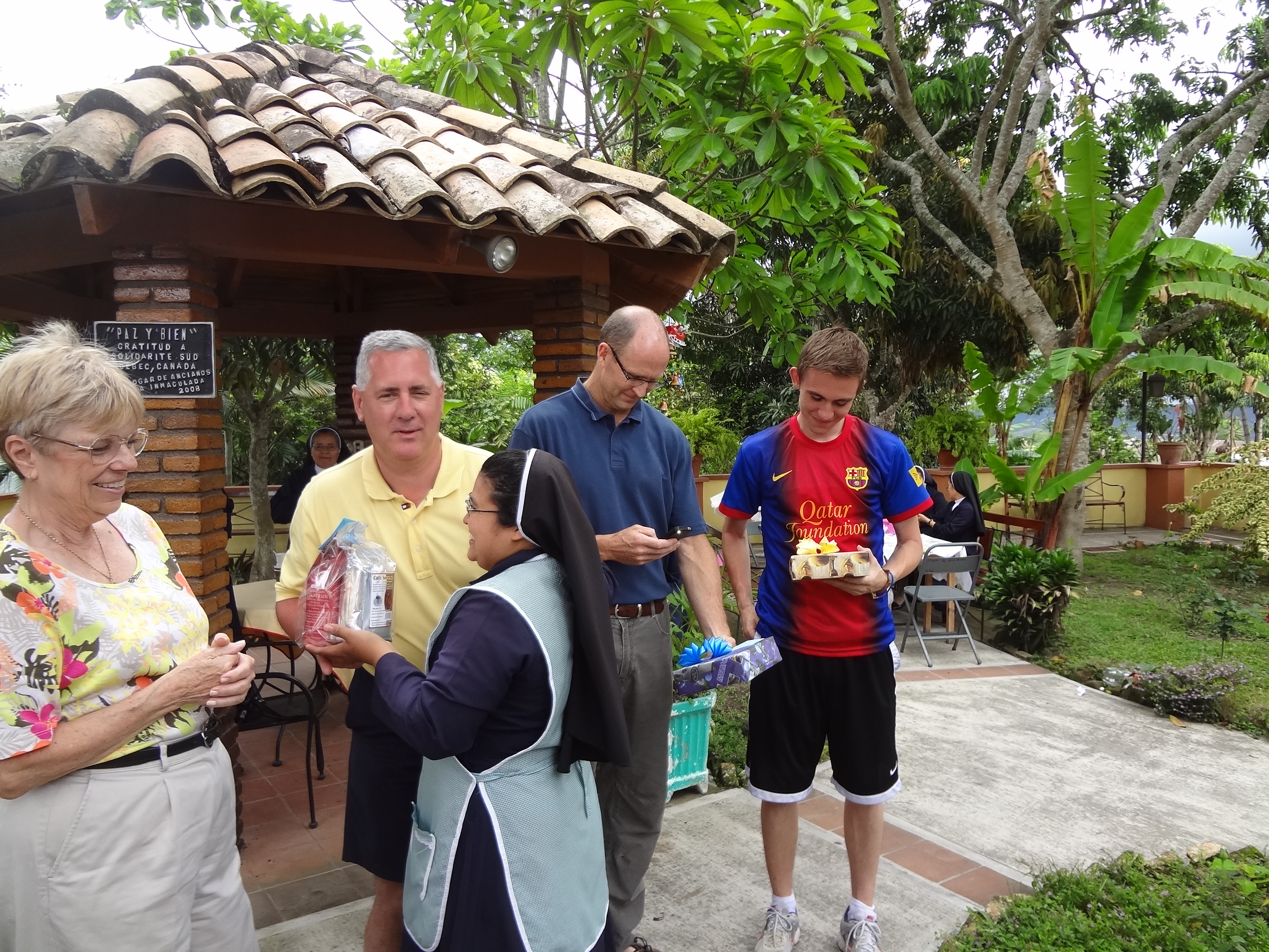 We returned to the Senior Center for lunch with the nuns from both houses. We ate outside in the courtyard and were treated to a couple songs from the jovenes (teens) who work in the elderly home. They often sit out in the courtyard, play guitars and sing…it’s a beautiful thing to come upon. The Sors spoke to us and told us how much St. Michael’s means to them and presented our team with gifts. It started raining so we all scattered, the team went to practice their skit we had planned to surprise the girls with that evening. Then it was back to the orphanage for more quality time with the girls. Now that our time was growing so short, we all realized the importance of each moment.