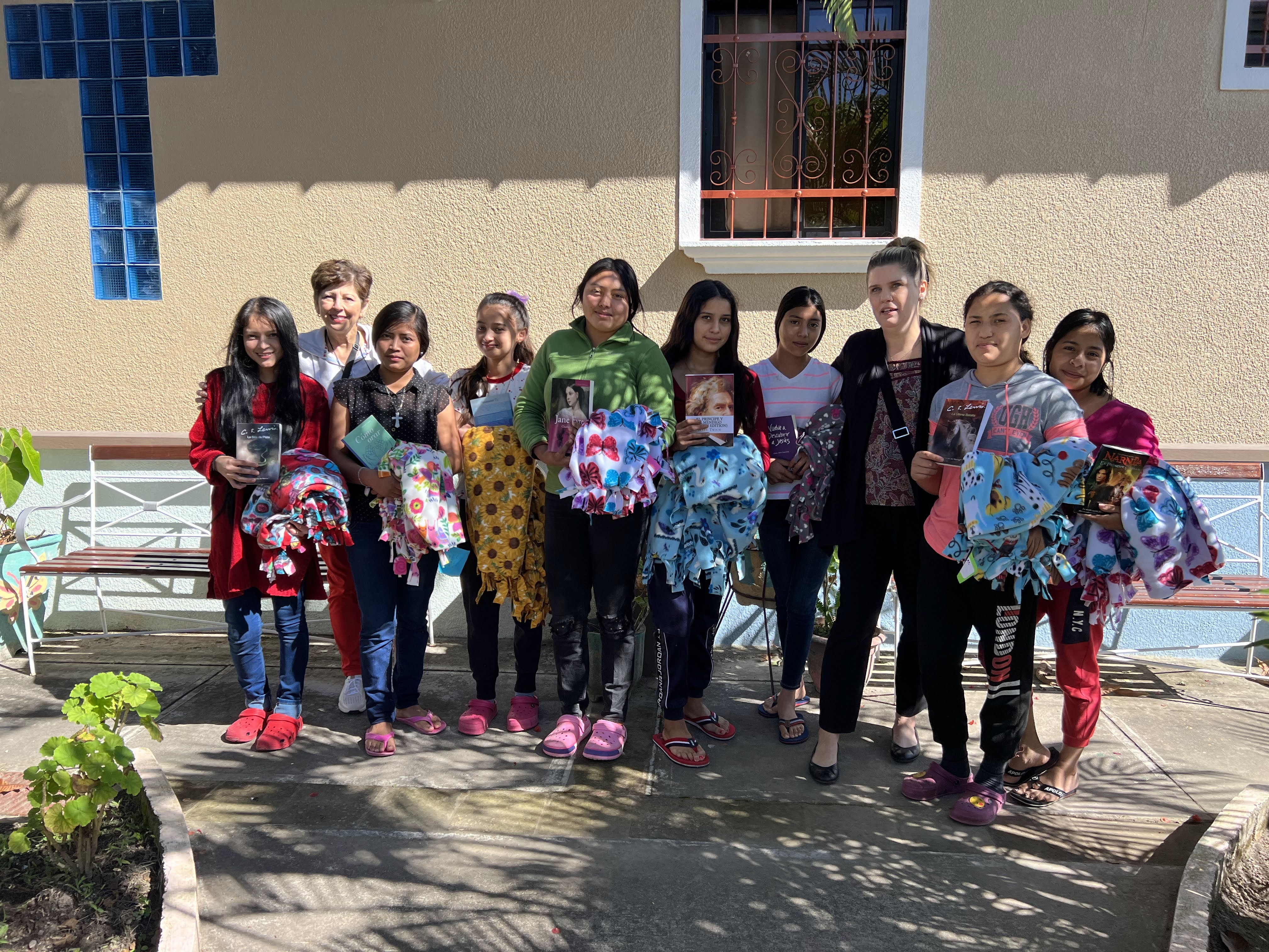 Jessica Kozel organized a book drive prior to this trip and along with a donation from the American Heritage Girls, we were able to bring enough books to host a book boutique in both the Hogar de Niñas and for the jovenes at the Hogar de Ancianos. The jovenes are young women that live and work at the home for elders. In exchange for the work they do, they are given room and board along with being able to attend the local high school (many come from villages where this is not available). They each chose a blanket and a book and send much gratitude to the SMA community!