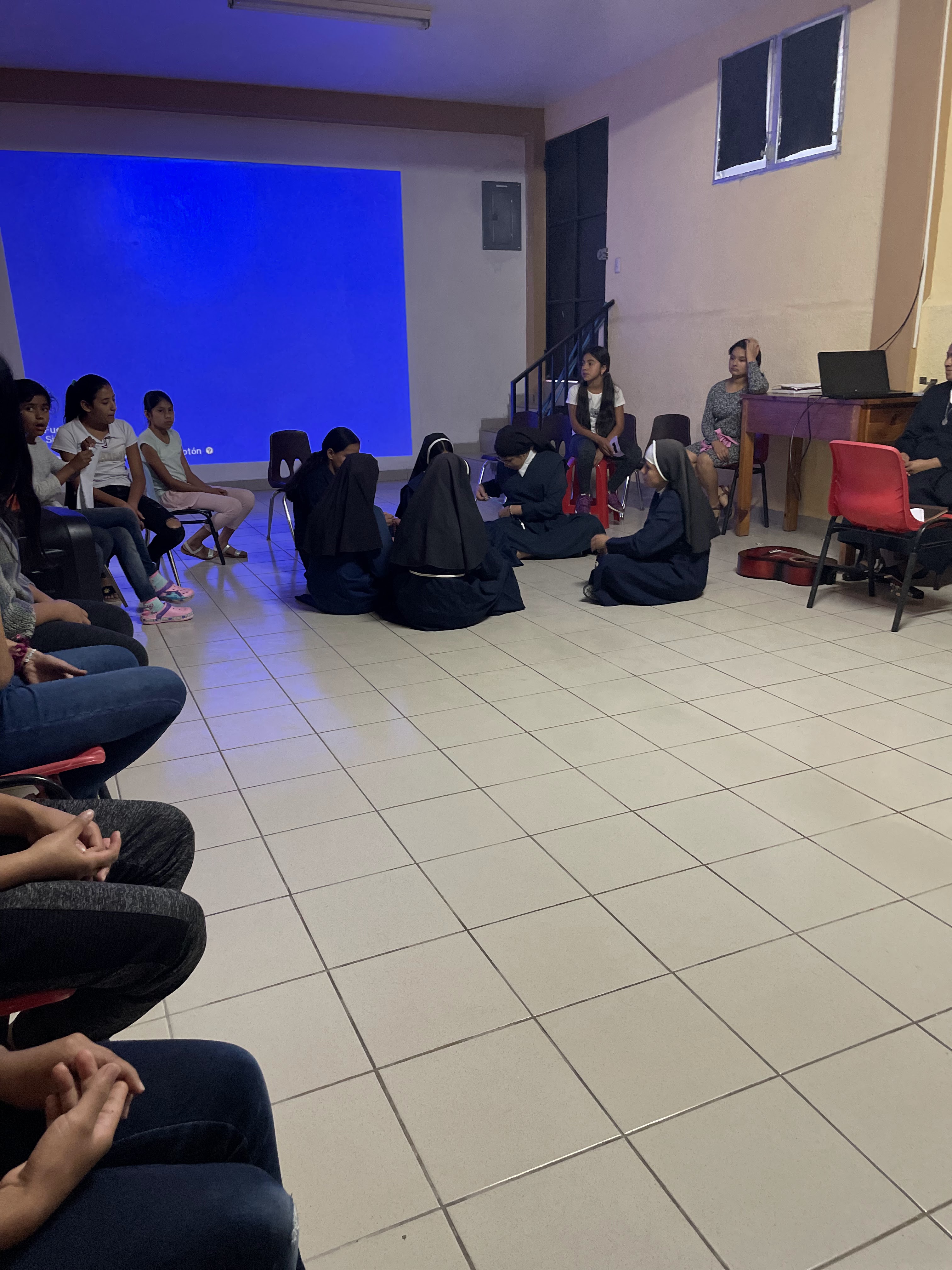 Later in the afternoon, we enjoyed some more free time in games and “play” at the Hogar de Niñas. The feast of Venerable Madre Paula de Jesus Gil Cano, the founder of the Franciscans of the Immaculate Conception is January 18, but because we would be travleing on that day, the sisters planned a grand fiesta for us to celebrate along with them on Jan. 17. Mass was celebrated at 3:00 pm and each girl seemed to sing wholeheartedly as the chapel was filled with songs of praise. We were treated to skits that recreated the life of Madre Paula. It was fun to see so many girls featured in the skit!! And then for a grand finale, we were entertained and deeply moved with speeches of gratitude, music, singing and dancing. We enjoyed a tasty dinner in the courtyard with the whole house enjoying each other’s company. We shed a few tears as we hugged and said our goodbyes, but we know we will be back, because they are our family!!