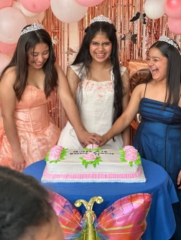 We started off the morning with breakfast with the Sors at the elderly home and enjoyed pancakes, fruit, bread, beans, and delicious Honduras coffee. After eating, we rushed to the Hogar de Niñas to help prepare for the quinceañera! Three young women- Dayana, Sindy , y Berenise – were celebrating their quinceañera today, and it was a fantastic day of celebrating them! Michelle and Sabrina helped the girls with their hair and makeup. The girls, Sors, and other members of the community were able to attend the mass and the party afterwards. At the party, everyone enjoyed a delicious meal, cake, and most importantly, lots of dancing! Chris and John danced traditional waltz with the quinces, but we also enjoyed all sorts of line dancing to country music, and other popular American and Latina songs.
