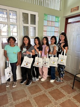 Later, the girls picked out books from a collection brought by the team. They were able to choose from a great variety of books, from stories about saints to science fiction. They also received personalized tote bags (thanks to Lynn) filled with some goodies, courtesy of the American Heritage Girls at SMA.