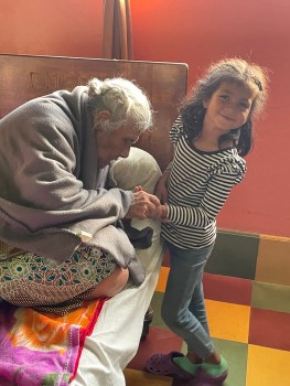 We stopped by the elderly home with flowers that the girls made yesterday, so they could present them to the elderly and sing a song. I was so happy to see the connections between the elderly and the young, even witnessing it made me happy. One of the residents brought a set of maracas so he could play with the girls. They spent some time afterward individually laughing with him.