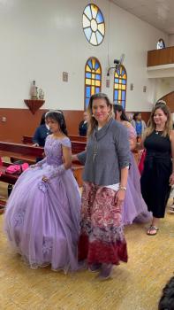 The Quinceanera mass was a great event, with some outside guests also attending (a few Seminarians) and other friends. All five girls were accompanied to the alter by the Women of St. Michael in a classy gesture. The Fiesta followed with some homemade chicken, veggies, and rice with enough cake for all 50+ attendees! We stayed over at the Nina’s house all day long, mixing up dancing and playing ball with some coffee with the Sors and mingling amongst each other.