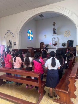 Next up, we went to the Hogar de Ninas where Padre Brian shared his vocation story and gave a talk on forgiveness. The girls laughed when he told them he had been engaged but then broke it off. The girls then completed their pen pal forms and we got updated pictures of each of them and gave each of them a small gift.