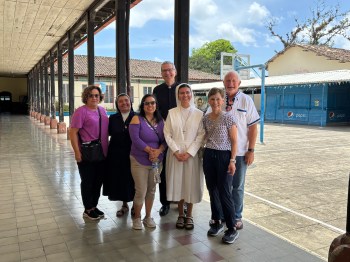 After that, we walked to the high school where Sor Mayra gave us a tour. Several of the Ninas attend this school. After lunch at the Hogar de Ancianos, we had an adoration hour with the elderly. They were so attentive and reverent to the exposed Eucharist.Following adoration, we treated the residents, Sors and Hovianas to cake for our 20 year anniversary with them. We gave the Sors a plaque and each resident a gift of the Sacred Heart of Jesus and the Immaculate Heart of Mary. We danced and laughed and had so much fun!