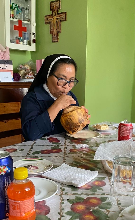 We were treated to a special lunch at the elderly home, including wholly prepared coconuts. Additionally, we were serenaded with songs of gratitude. It felt like the angels singing to us.