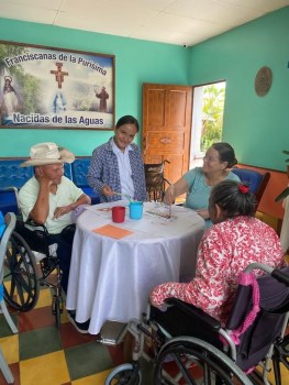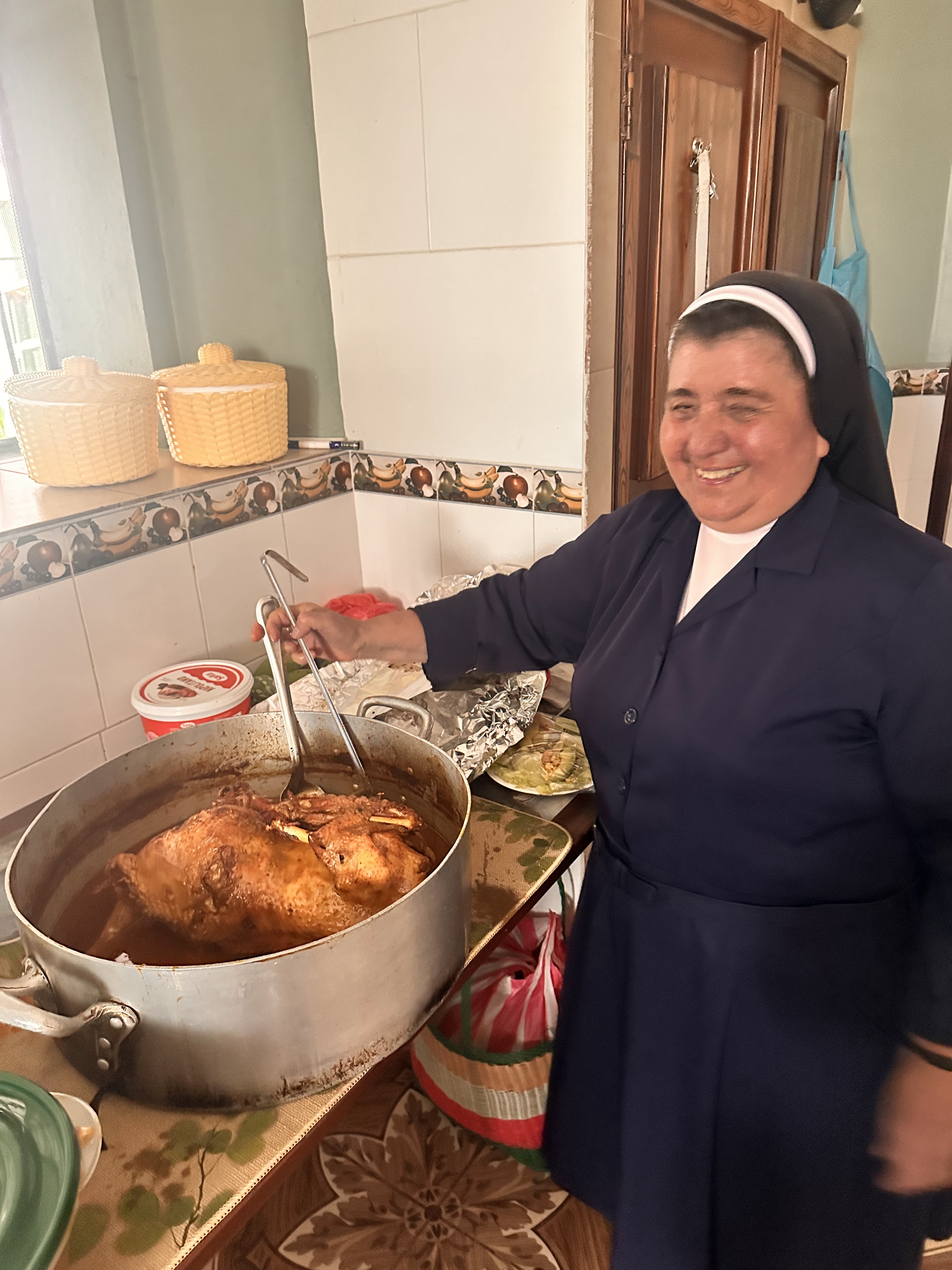Today, the team was very busy. We started our day with the elderly, helping them paint pictures. We got to give gifts to the sisters, and they were filled with such gratitude for such simple things. The funniest thing, at least so far today, has been the farm-to table- turkey we enjoyed! Some of us got a hoot watching the video of the turkey enjoying its last few minutes on the planet; others of us could not bear to watch. But we all laughed and laughed. (One of the ways the sisters honor their guests is to kill one of the turkeys that they raise on the property. It is truly the best tasting turkey I have ever tasted!)